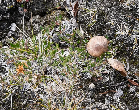 Surprisingly few birds, but several varieties of mushrooms pushing through the boggy ground. Slogged our way up and down the landscape, our boundaries, as is always the case on these walks, defined by bear guards armed with high-powered rifles who mark out the perimieter of our allowed territory. They are scattered on points of high ground and form an arc about a kilometer or two in diameter within whose bounds we can safely walk.