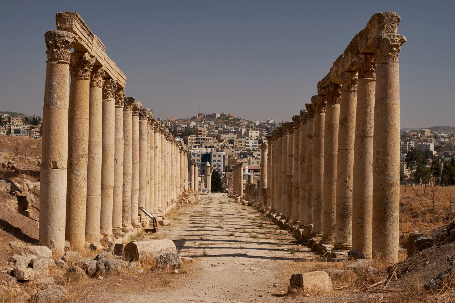 Bashar sorted a car and driver for us today to drive to the ruins at Jerash about 45 minutes out of Amman. Jerash is the site of the ruins of the Greco-Roman city of Gerasa, also referred to as Antioch. Ancient Greek inscriptions from the city as well as literary sources support that the city was founded by Alexander the Great or his general Perdiccas, who settled retired Macedonian soldiers there (γῆρας - gēras means "old age" in Ancient Greek). This took place during the spring of 331 BC, when Alexander left Egypt, crossed Syria and then went to Mesopotamia. Jerash is sometimes misleadingly referred to as the "Pompeii of the Middle East", referring to its size, extent of excavation and level of preservation however Jerash was never destroyed and buried by a single cataclysmic event, such as a volcanic eruption although it was largely destroyed in an earthquake in 790AD. Jerash is considered one of the most important and best preserved Roman cities in the Near East.